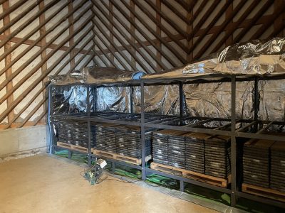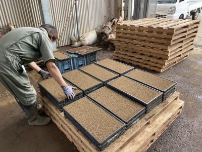 昨年購入した育苗機にて約3日程発芽をさせてからハウスに移動させます。